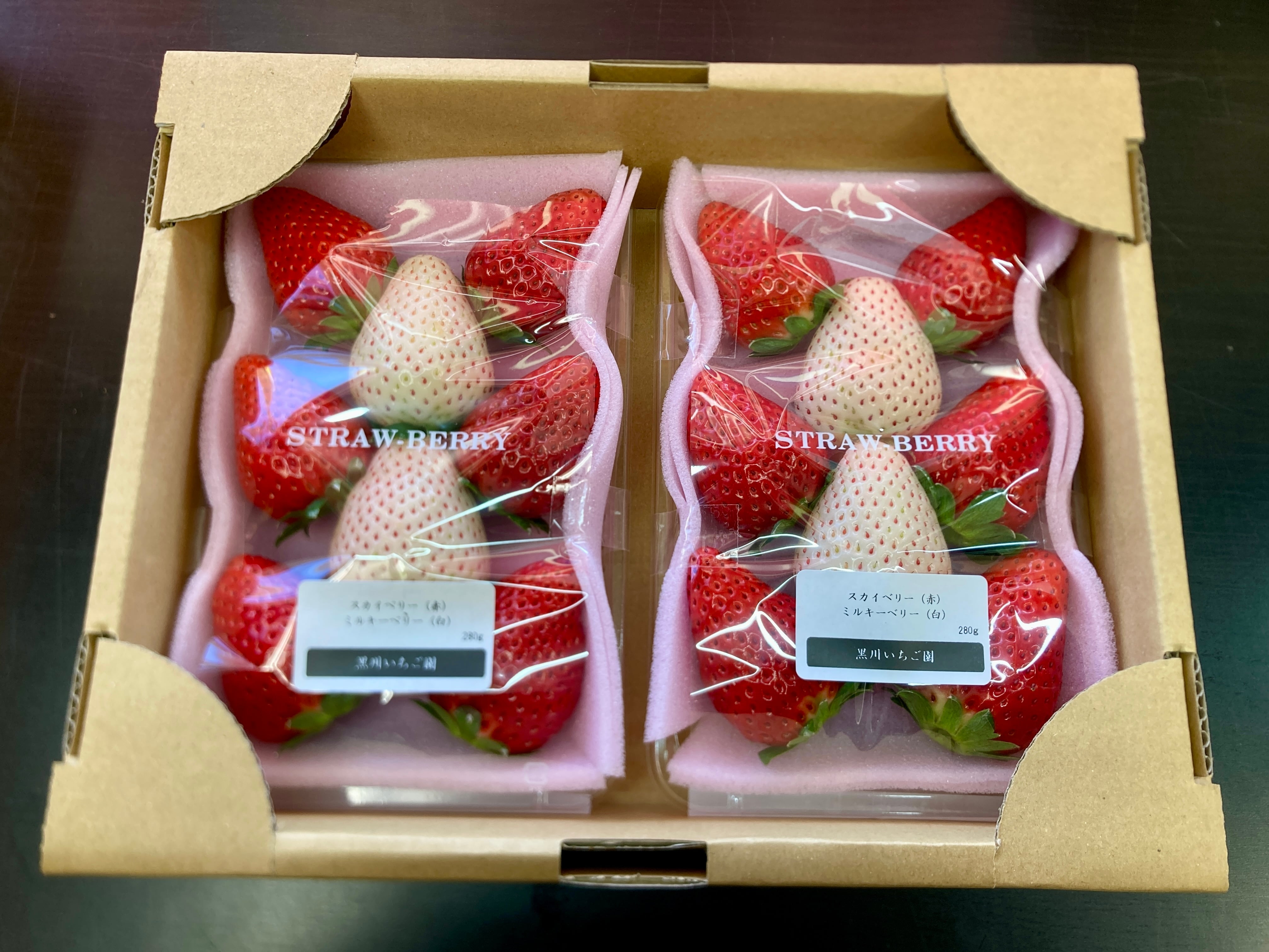 黒川いちご園のこだわりの詰まった【スカイベリー&ミルキーベリー】がミックスされた2パックのセットです。